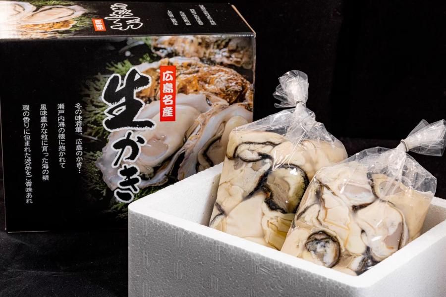新鮮で美味しい広島県江田島産の生牡蠣のむき身を、そのまま袋詰めしてクール宅急便でお届けします。